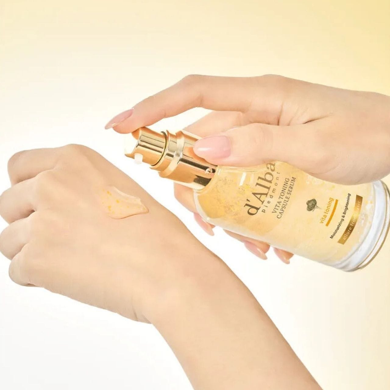 Serum D'Alba Vita Toning on läpimurtoformula, joka perustuu puhtaaseen tyrnimarjaveteen , joka antaa iholle luonnollista vitamiinienergiaa. Ainutlaatuiset 40,000 vitamiinikapselia, jotka vapautuvat levityksen aikana, tarjoavat intensiivistä ravintoa ja välittömän kirkastavan vaikutuksen. Edistyksellinen Vitality Complex yhdistää kosteuttavia, uudistavia ja ikääntymistä ehkäiseviä aktiivisia ainesosia, jotka toimivat synergisesti sisältäpäin.