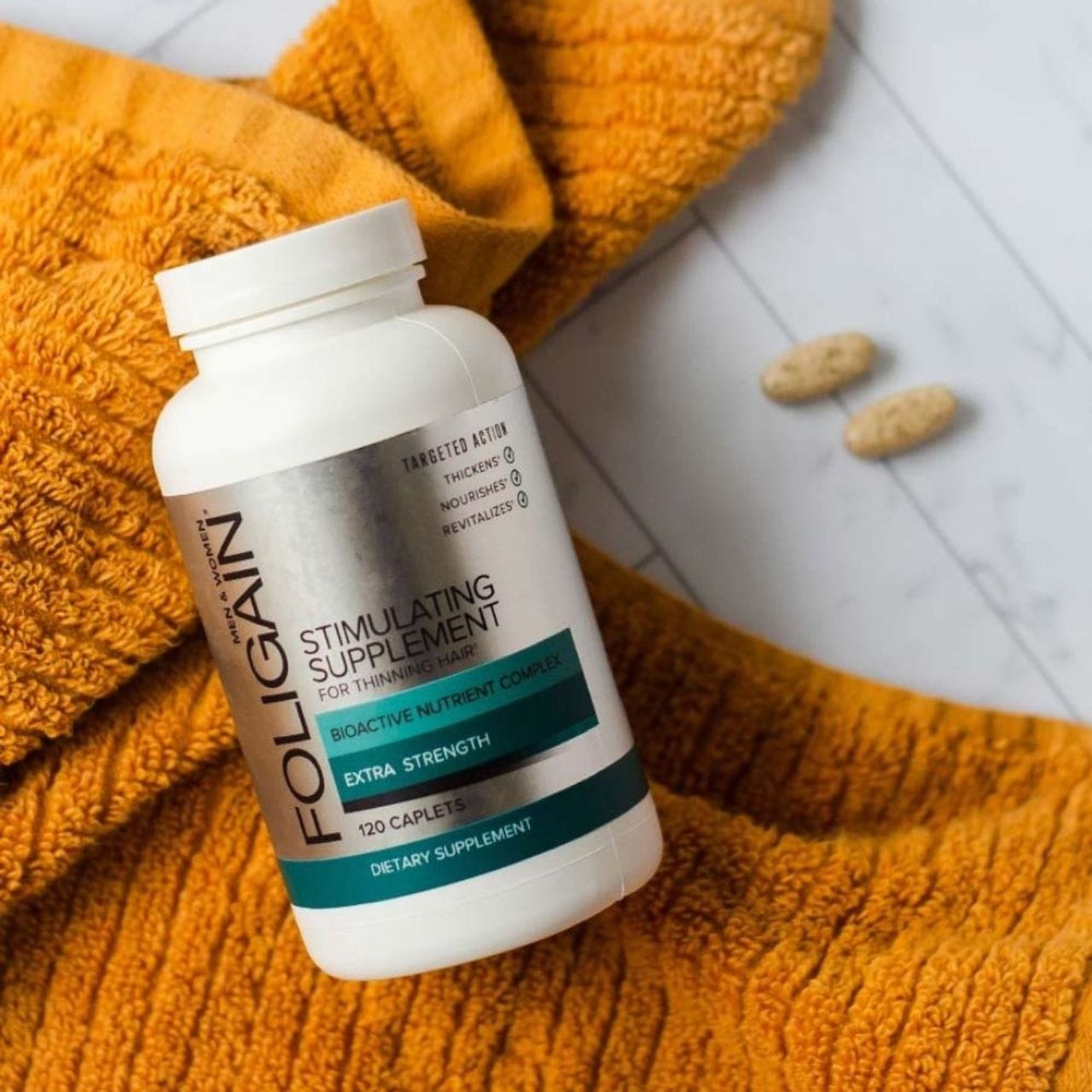 Foligain Stimulating Supplement on ravintolisä kapselimuodossa. Se sisältää tehokkaan bioaktiivisen -kompleksin superravinteita, , mukaan lukien tärkeät ainesosat kuten biotiini, B-vitamiinit, kupari ja ginseng.