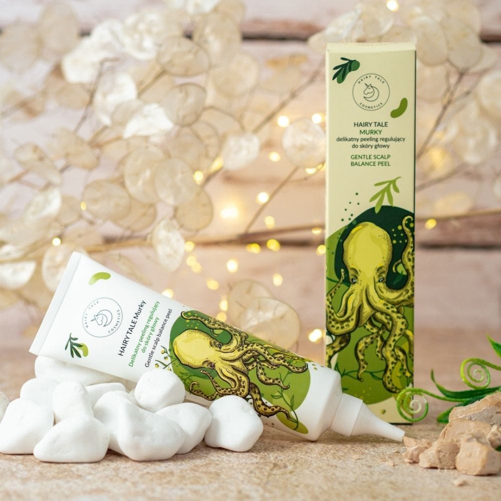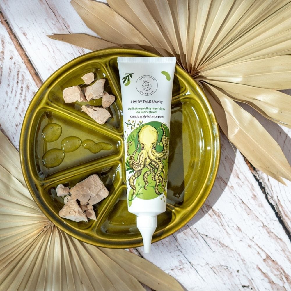 Hairy Tale Cosmetics Murky on hellävarainen, säätelevä hiuspohjan kuorinta, joka puhdistaa ja rauhoittaa tehokkaasti rasvoittumiseen ja hilseilyyn taipuvaista ihoa . Atseloglysiiniä, koiruohoa ja hiivauutetta, sisältävä koostumus säätelee talineritystä ja palauttaa tasapainon päänahkaan. Geelimäinen koostumus takaa helpon levityksen, samalla kun kosteuttavat ainesosat takaavat riittävän kosteutuksen.
