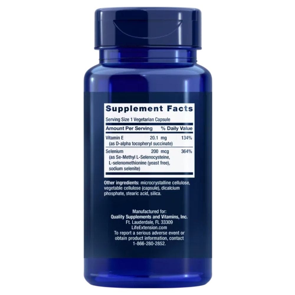 Life Extension Super Selenium Complex 200 mcg & E-vitamiini - 100 Veg-kapselia
