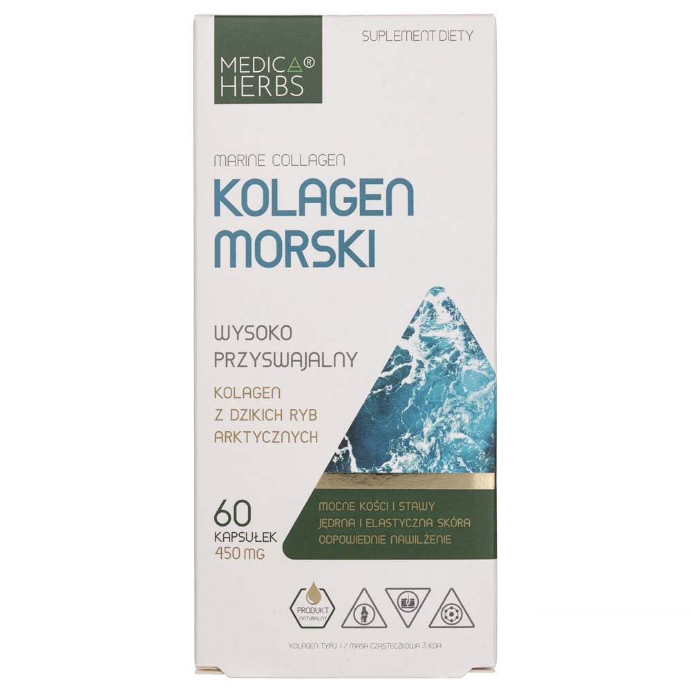 Merikollageeni Medica Herbs, on ravintolisäkapselit, jotka sisältävät merikaloista uutettua kollageenia. Kollageeni on ihmiskehossa luonnollisesti esiintyvä proteiini, joka on yksi sidekudoksen olennaisista komponenteista. Se tukee nivelruston luonnollista uudistumista ja siten nivelten oikeaa toimintaa.