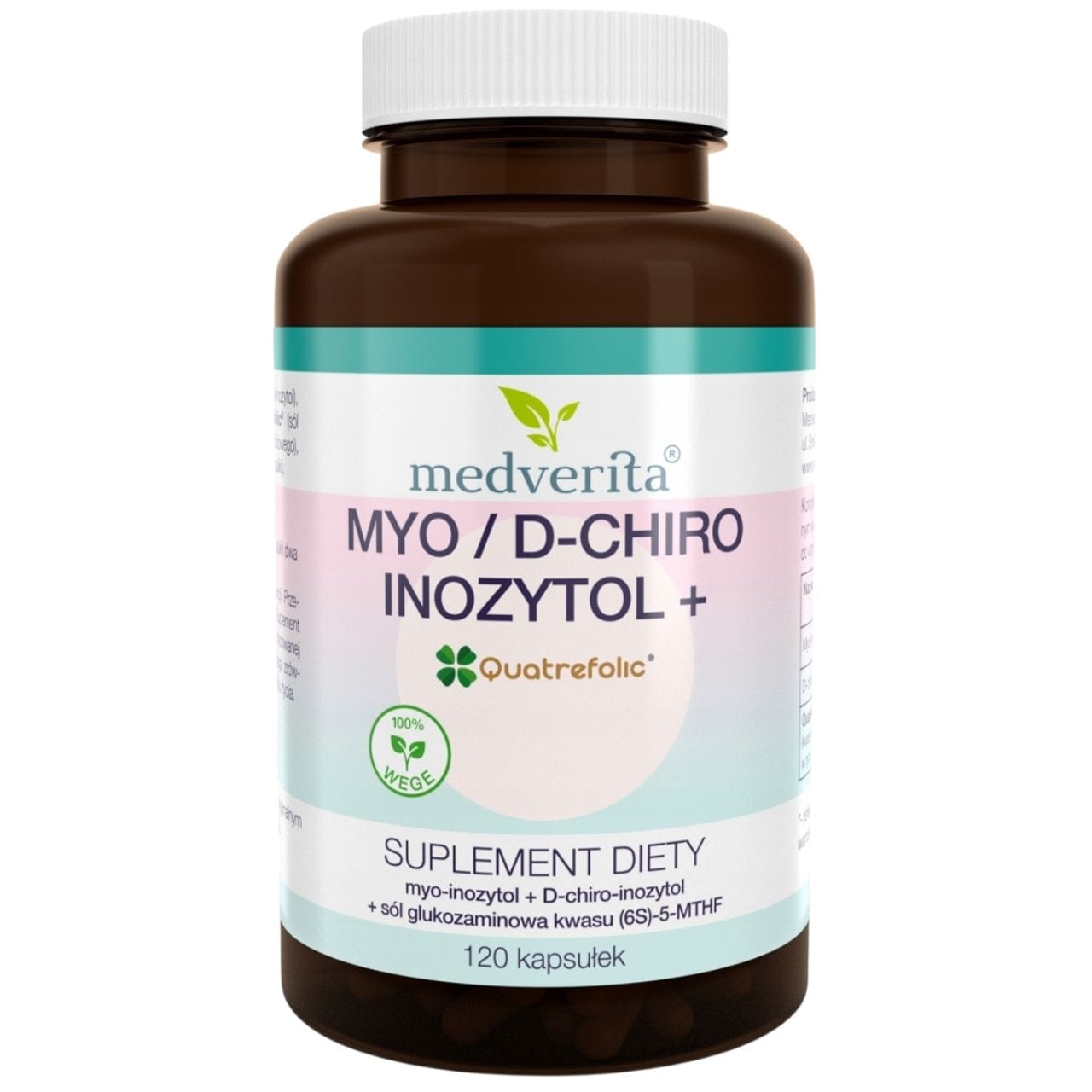 Medverita Myo/D-chiro-inositol + Quatrefolic ® on ravintolisä kapselimuodossa. Myo- ja D-chiro-inositolin stereoisomeerien kompleksi, jossa on aktiivista foolihappoa Quatrefolic ® . Inositoli on vitamiinin kaltainen orgaaninen yhdiste, jota kutsutaan joskus myös ”B8-vitamiiniksi”. Sen biologisesti aktiivinen muoto on myo-inositoli, jota esiintyy kasvi- ja eläinorganismeissa. Lisäravinne ilman tarpeettomia lisäaineita ja täyteaineita, sopii vegaaneille ja kasvissyöjille.