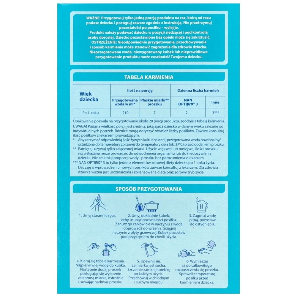 NAN OPTIpro 3 on maitopohjainen tuote , joka on tarkoitettu pikkulapsille. Rikastettu vitamiineilla ja kivennäisaineilla. Se ei korvaa rintamaitoa, vaan on tuote , joka on kehitetty yli 1-vuotiaille lapsille