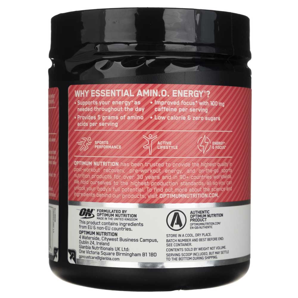 Essential Amin.O. Energy by Optimum Nutrition, on vesimelonin makuinen jauhemainen ravintolisä, joka sisältää nopeasti imeytyviä aminohappoja.