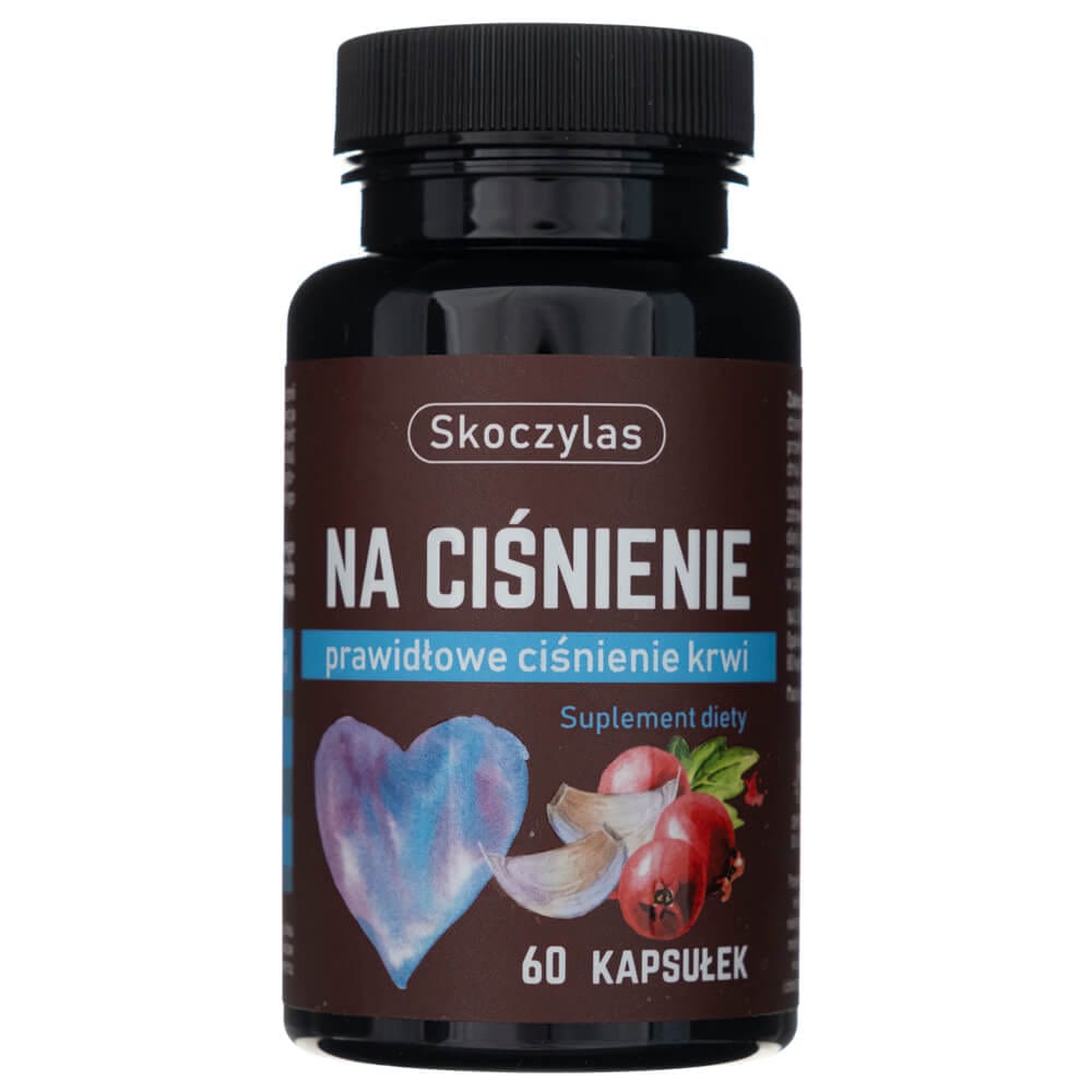 Ravintolisä Na Ciśnienie tuotemerkki Skoczylassisältää kaliumia, joka auttaa ylläpitämään normaalia verenpainetta. Hawthorn, joka tukee sydämen ja sydän- ja verisuonijärjestelmän toimintaa. Aroniaa ja valkosipulia, joilla on antioksidanttisia ominaisuuksia.
