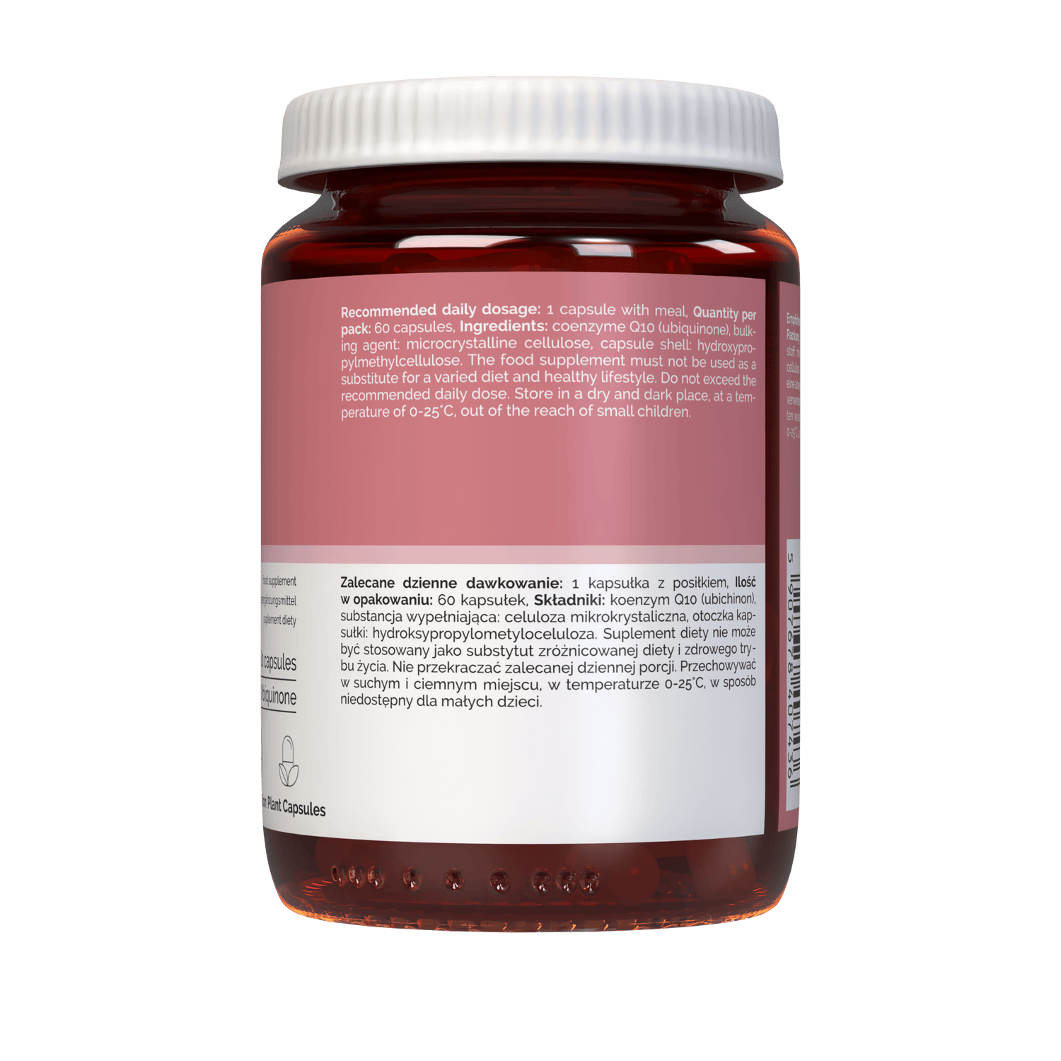 Koentsyymi Q10 ( ubikinoni ) , täyteaine: mikrokiteinen selluloosa , kapselin kuori ( hydroksipropyylimetyyliselluloosa ) .
