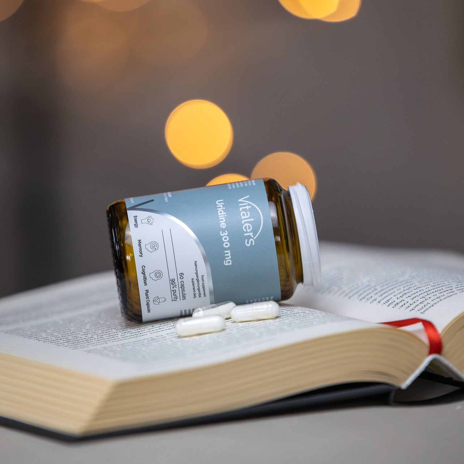Uridiini by Vitaler's on ravintolisä, joka sisältää 300 mg uridiinimonofosfaattia. Uridiini monofosfaatti pidetään tärkeänä tekijänä hermoston oikeassa toiminnassa. Uridiini esiintyy luonnossa kalassa, parsakaalissa, persiljassa ja naudanmaksassa.