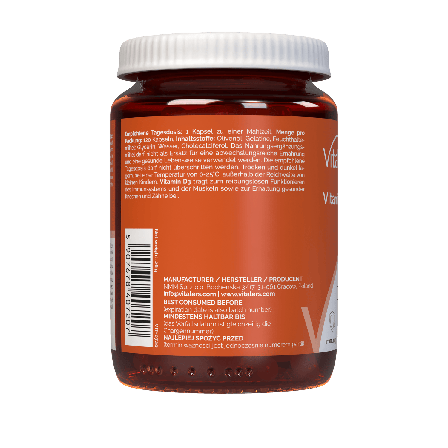Vitaler's D3-vitamiini 4000 IU on ravintolisä tippoina, joka sisältää lanoliinista peräisin olevaa D3-vitamiinia. D-vitamiini auttaa immuunijärjestelmän, moitteettomassa toiminnassa, lihaksissa, sekä luuston ja hampaiden terveyden ylläpitämisessä.