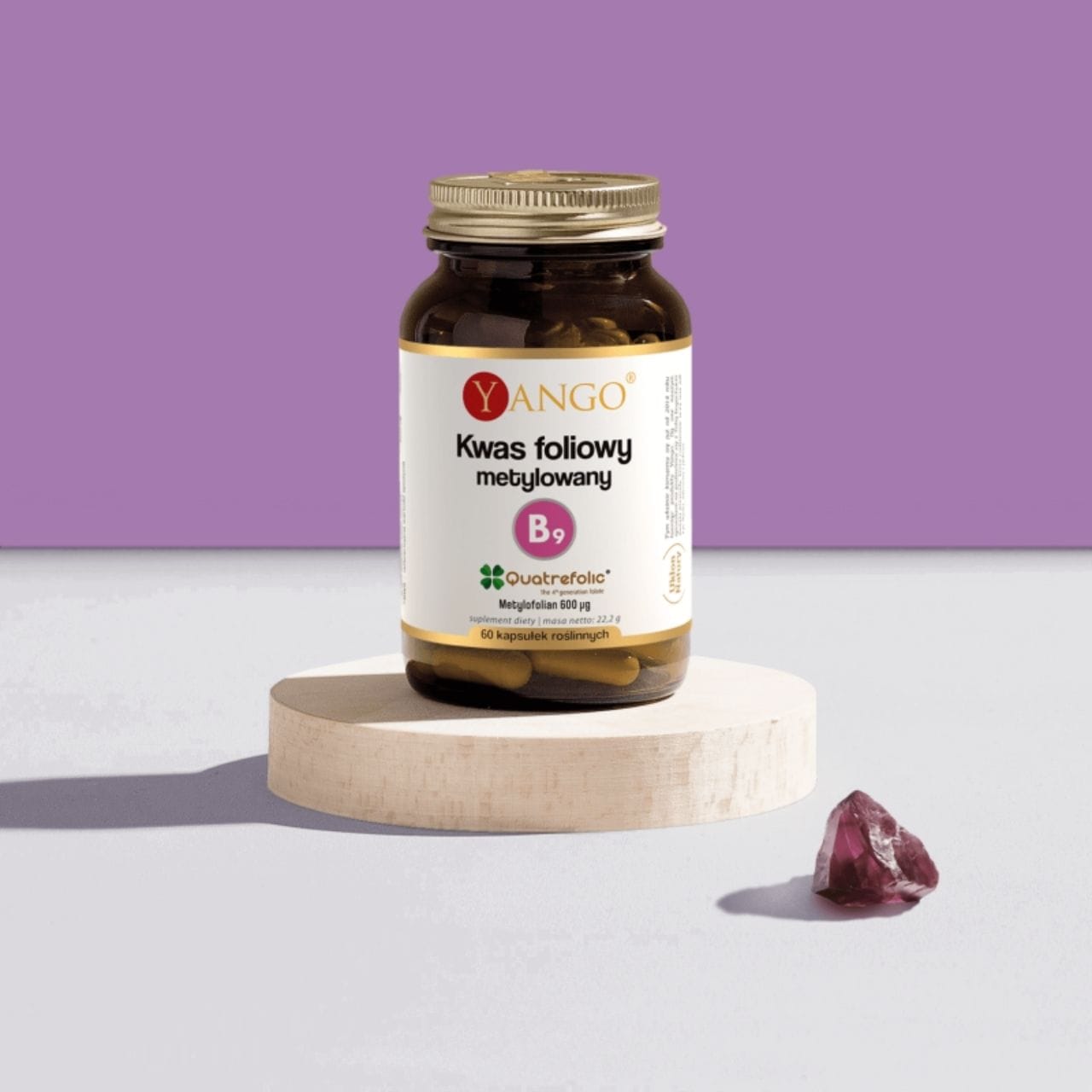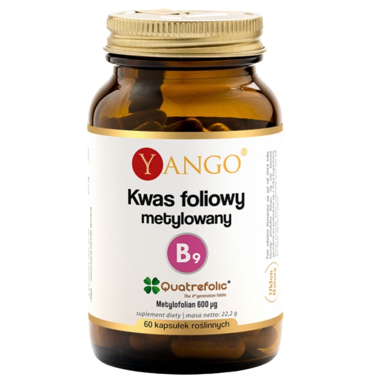 Yango Metyloitu foolihappo on vegaanisissa selluloosakapseleissa oleva ravintolisä, joka sisältää foolihapon aktiivista muotoa – 5-MTHF Quatrefolic ® (600 µg – 300 % suositellusta päivittäisestä saannista) kapselia kohti. Folaatti edistää normaalia veren muodostumista, aminohappojen synteesiä, immuunijärjestelmän toimintaa sekä väsymyksen ja uupumuksen vähentämistä . Folaatti vaikuttaa solujen jakautumiseen ja normaaliin homokysteiinin aineenvaihduntaan. Vegaaninen tuote, jonka koostumus on minimalistinen ja vapaa tarpeettomista lisäaineista. Ravintolisätiedot: